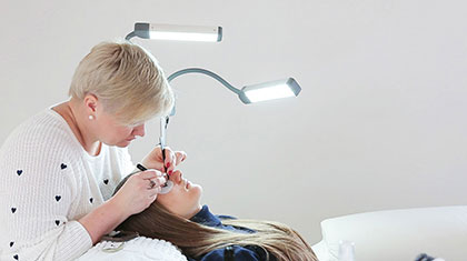 Podczas zabiegu stylizacji rzęs najważniejsze jest zadowolenie klientek. Nie powinniśmy jednak zapominać o sobie. Komfort pracy w naszym fachu jest niezmiernie ważnym elementem. Aby prawidłowo przeprowadzić usługę niezbędne jest dobre oświetlenie. To wszystko daje nam lampa Glamcor od Noble Lashes. Uwielbiana przez wizażystów, stylistów oraz kosmetyczki na całym świecie, szybko podbiła serca stylistek rzęs stając się najbardziej pożądanym narzędziem pracy, a zarazem synonimem profesjonalizmu.