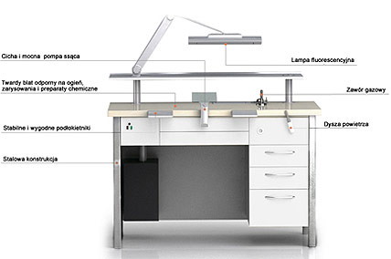 Proponujemy profesjonalne stoły protetyczne, które zaspokoją potrzeby każdego protetyka. Konstrukcja oparta na mocnych aluminiowych profilach zapewniających stabilność i trwałość. Ergonomiczna budowa pozwoli zachować odpowiednią pozycję podczas pracy, zapewniając wygodę i komfort.