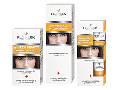 Laboratorium Kosmetyczne FLOSLEK opracowało kompleksową linię preparatów przeznaczonych do pielęgnacji skóry wrażliwej, skłonnej do nierównomiernej pigmentacji. Preparaty WHITE & BEAUTY są polecane miejscowego stosowania na większość defektów pigmentacyjnych (piegi, plamy posłoneczne, plamy związane z wiekiem, plamy wątrobowe). Regularne stosowanie kosmetyków Serii WHITE & BEAUTY zredukuje przebarwienia i złagodzi niejednorodne zabarwienie skóry twarzy, dekoltu, dłoni i innych części ciała. Kosmetyki WHITE & BEAUTY są polecane dla osób które obserwują swoje przebarwienia skórne i pamiętają o profilaktyce skóry przed czerniakiem.